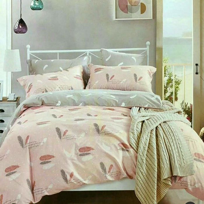 روتختی طرح پر رنگ صورتی جنس کتان نخ رنگ ثابت