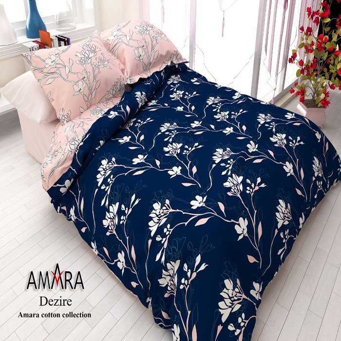 روتختی طرح گل و برگ بهاری/ جنس کتان نخ/ لحاف دو رو رنگ سورمه ای و صورتی کم رنگ/بسیار زسبا و هارمونی رنگ خاص