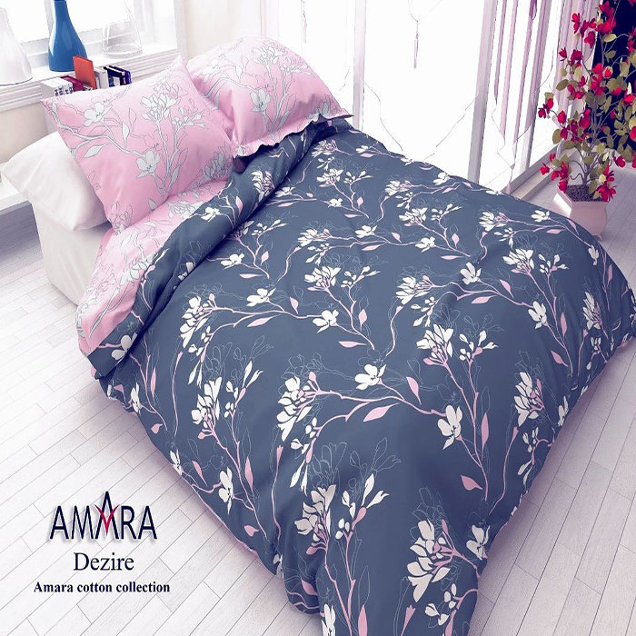 روتختی طرح گل و برگ بهاری/ جنس کتان نخ/لحاف دو رو رنگ سورمه ای و کرم/ طراحی خاص و متفاوت