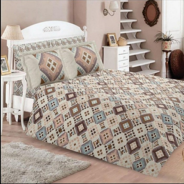 لحاف روتختی/ برند ملروز رزین تاژ/ طرح تایل/ جنس کتان نخ/ تک رنگ