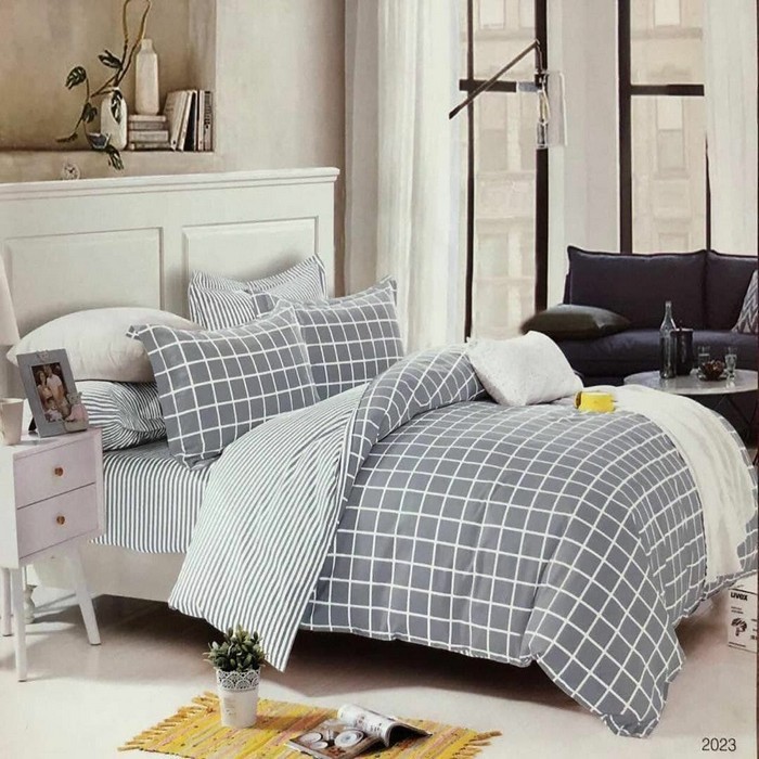 لحاف روتختی/ طرح چهارخونه/ جنس کتان نخ/ رنگ طوسی