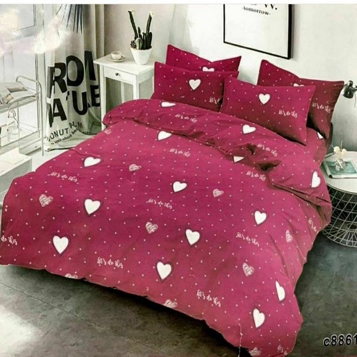 لحاف روتختی طرح قلب/ جنس تترون نخ/ رنگ سرخابی